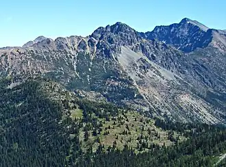 Devils Peak is an 8,081-foot (2,463-metre) mountain summit located in western Okanogan County in Washington state.[3] It is part of the Okanogan Range which is a sub-range of the North Cascades Range. The mountain is situated in the Pasayten Wilderness, on land administered by the Okanogan–Wenatchee National Forest. The nearest higher neighbor is Robinson Mountain, 1.88 miles (3.03 km) to the east-southeast, and Slate Peak is set 3.1 miles (5.0 km) to the west.[1] Precipitation runoff from Devils Peak drains west into Robinson Creek, and east into Eureka Creek, which are both part of the Methow River drainage basin.