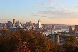 ![]() View of Covington and Cincinnati from Memorial Overlook in Devou Park | |