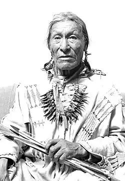Dewey Beard or Wasú Máza ("Iron Hail", 1858–1955) was a Minneconjou Lakota who fought in the Battle of Little Bighorn as a teenager.[1] After George Armstrong Custer's defeat, Wasu Maza followed Sitting Bull into exile in Canada and then back to South Dakota where he lived on the Cheyenne River Indian Reservation (in Dewey and Ziebach counties).[2]