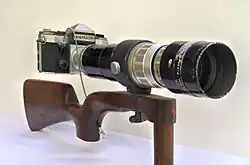 A characteristic model was the Diax Ia for interchangeable lenses, with 3 different viewfinders in the top, each in a different color: blue for 35mm lenses, yellow for 85 or 90mm lenses and neutral for 45 or 50 mm lenses. The Diax II, Diax IIa and Diaxette models were rangefinder cameras. The b models were like the a models, but with a rapid film advance lever. The Diax system also included 10 lens types covering 6 focal lengths with a common filter thread size of 40.5mm.[1]