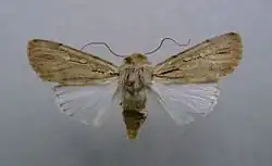 Dichagyris is a genus of moths of the family Noctuidae. The former genera Loxagrotis, Pseudorichia, Pseudorthosia and Mesembragrotis are now considered subgenera of Dichagyris. From Greek dikha-gyris 'apart, asunder; double' + 'the finest meal or flour'; English pronunciation: /digh-kuh-JIGH-riss/, IPA [dɑj•kə'dʒɑj•ɹɪs].