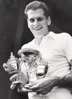 In 1951, at the age of 24, Savitt won the Wimbledon Singles Championship. Along the way he beat Larsen, the No. 1 U.S. player, in straight sets, and Herbert Flam, the No. 2 U.S. player.[13] He won the Australian Open Singles title, winning in straight sets in the 61-minute final against Ken McGregor.[13][17] He became the first American since Don Budge, 13 years earlier, to win both Wimbledon and the Australian Open in one season.[15]