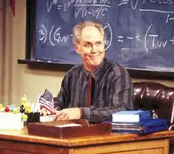 Dick works at Pendelton State University as a professor of physics, and shares an office with Anthropology professor Mary Albright (played by Jane Curtin). In the first episode the office is green with various pictures and certificates adorning the wall; after this, however, the office is antique white with tribal masks featured, presumably from Albright's anthropological studies (later it is found that she simply "bought them at airports").[3] Dick often uses his class, oddly enough the same throughout all six seasons, to gain a better understanding of humanity by assigning arbitrary essays on which their grade depends. (John's real life son, Ian Lithgow plays the shy, and often ridiculed, Leon, one of Dick's students.) Dick never has the idea that they're actually learning something, but when he finally gets through to them "his father" came in, dismissing the class because he needed to talk to Dick.[4]