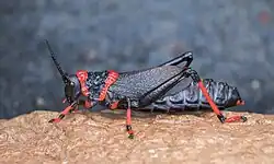 Dictyophorus is the type genus of grasshoppers in the tribe Dictyophorini, of the family Pyrgomorphidae; it is native to sub-Saharan Africa.[1] The genus was named by Carl Peter Thunberg in 1815.[2] They are relatively large, typically about 4–7 cm (1.6–2.8 in) long, and often have bright colors warning of their toxicity.[3]