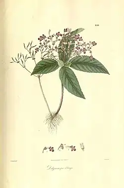 The genus Didymocarpus was described by Nathaniel Wallich in 1819 based on specimens he received from Nepal. Due to lack of a clear definition of the generic boundaries, more than 180 species and 450 names were affiliated to this genus over time.[5] These included many morphologically distinct species from Madagascar, Western Ghats of India and Southeast Asia. The genus was remodeled and redefined by Weber and Burt in 1998 with about 80 species. Recently, many new species were described from India, China and Thailand and the genus now comprises about 100 species.[6][7]