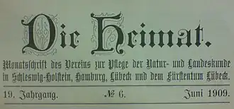 Die Heimat was the title of a monthly journal that was published from 1891 to 2002 on the subject of the natural history and regional culture of Schleswig-Holstein and neighbouring regions. Since 2003, the journal has been called Natur- und Landeskunde: Zeitschrift für Schleswig-Holstein, Hamburg und Mecklenburg ("Natural History and Regional Culture: Journal for Schleswig-Holstein, Hamburg und Mecklenburg").