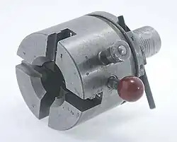 The die head shown cuts an outside thread. There are also collapsible die heads that are used to cut an internal thread.
