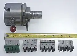 The bottom picture shows a Die Head used for Thread Rolling. A Rolled Thread may have greater strength than a cut thread, though it usually requires more energy to roll a thread than cut one.