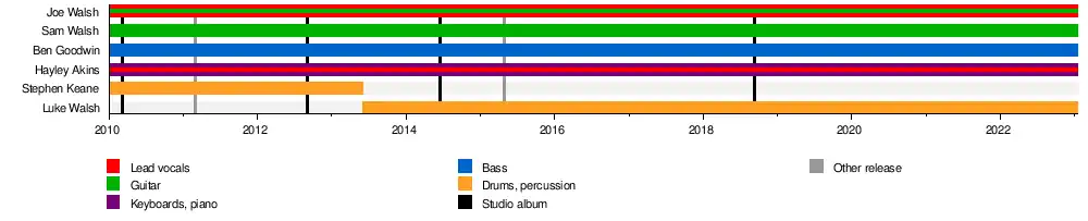 | Members | Joe Walsh Sam Walsh Luke Walsh Ben Goodwin Hayley Akins Philippa Bloomfield |