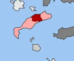 Dikaios (Greek: Δίκαιος) is a former municipality on the island of Kos, in the Dodecanese, Greece. Since the 2011 local government reform, it is part of the municipality Kos, of which it is a municipal unit.[2] Population 8,192 (2021). The seat of the municipality was in Zipari. The other large town is Pyli. The municipal unit, which comprises about one-fifth of the island's territory, has a land area of 62.575 km².[3] It shares the island of Kos with the municipal units of Kos and Irakleides.
