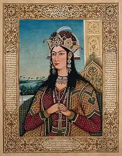 Dilras Banu Begum was a member of the prominent Safavid dynasty,[12] the ruling dynasty of Persia and one of its most significant ruling dynasties. She was the daughter of Mirza Badi-uz-Zaman Safavi (titled Shahnawaz Khan and popularly known as Mirza Deccan) whose great-grandfather was a son of Shah Ismail I Safavi, the founder of the Safavid dynasty.[13] Shahnawaz Khan was the viceroy of Gujarat and a powerful, high ranking grandee at the Mughal court.[14] He loved pomp and grandeur, which was very evident in the lavish and grand marriage celebrations of his daughter, Dilras to Prince Muhi-ud-Din.[15]