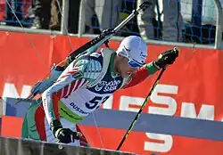 Dimitar Gerdzhikov (Bulgarian: Димитър Герджиков; born 27 March 1992) is a retired Bulgarian biathlete. He competed in the 2018 Winter Olympics, where he finished 81st in the sprint and 43rd in the individual and was part of the lapped relay,[2] and in 2022 Winter Olympics. His best individual result was 21st place at the individual in 2019, and the best relay result was 7th place, achieved in the 2014/15 season. He is engaged to fellow biathlete Desislava Stoyanova, from whom he has one child[3]