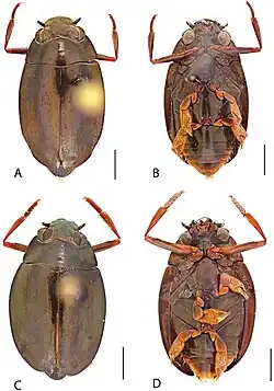 - ^ Gustafson, Grey T.; Miller, KB (2015). "Тhe New World whirligig beetles of the genus Dineutus Macleay, 1825 (Coleoptera, Gyrinidae, Gyrininae, Dineutini)". ZooKeys (476): 1–135. doi:10.3897/zookeys.476.8630. PMC 4311692. PMID 25685002.