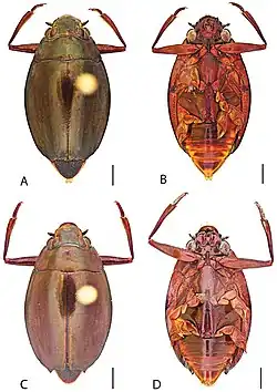 - ^ Gustafson, Grey T.; Miller, KB (2015). "Тhe New World whirligig beetles of the genus Dineutus Macleay, 1825 (Coleoptera, Gyrinidae, Gyrininae, Dineutini)". ZooKeys (476): 1–135. doi:10.3897/zookeys.476.8630. PMC 4311692. PMID 25685002.