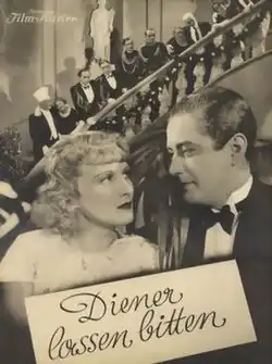 Dinner Is Served (German: Diener lassen bitten) is a 1936 German comedy film directed by Hans H. Zerlett and starring Herbert Hübner, Gertrud de Lalsky, and Hertha Guthmar.[1] The film is a comedy set around the British aristocracy.[2]