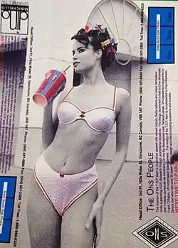 In 1996 Minichiello launched ONS, a chic but sassy line of bespoke undergarments, boldly branded to “look best on the bedroom floor”.[12] Sometimes playfully referred to by insiders as ‘One Night Stand’, ONS undergarments were brightly colored boxers, briefs and G-strings in fabrics like burnout velvet, stretch velour and imported silk. ONS was one of the first brands of underwear marketed as a lifestyle choice. Each ONS purchase included a complimentary (and flavoured) ONS-labeled condom, with portions of sales going to HIV and AIDS research. The boundary-pushing marketing and designs created a buzz, shooting Minichiello into the Vancouver fashion scene as one of the first designers to anticipate the unlimited possibilities of underwear conceived as play, entertainment, identity, and social activism.[12][13]