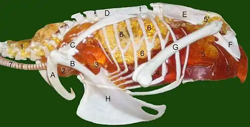 - ^ Tickle, P.G.; Ennos, A.R.; Lennox, L.E.; Perry, S.F.; Codd, J.R. (November 2007). "Functional significance of the uncinate processes in birds". Journal of Experimental Biology. 210 (Pt 22): 3955–3961. doi:10.1242/jeb.008953. PMID 17981863.