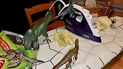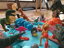 Dinovember is a November observance invented in 2012.[1][2] On each night of this observance, toy dinosaurs undergo arrangement into charming or mischievous positions making them look alive. Every morning, children find dinosaurs, which remain frozen, while they appear in various positions throughout the setting.[2] The toy decorations undergo changes similar to Elf on the Shelf, but the organizers keep it free from commercial interests.