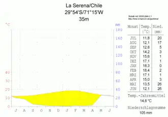 - ^ "Temperatura Histórica de la Estación La Florida, La Serena Ad. (290004)" (in Spanish). Dirección Meteorológica de Chile. Archived from the original on 23 May 2023. Retrieved 23 May 2023.