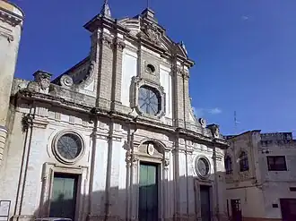 A very great earthquake struck the area of Nardò on 5 December 1456, severely damaging the cathedral and causing the bell tower to collapse.[7] On 20 February 1743, another major earthquake struck, bringing major damage to the Palazzo civico and the churches of S. Michele Arcangelo, S. Antonio da Padova, S. Gregorio Armeno, S. Domenico, and S. Francesco d'Assisi.[8]