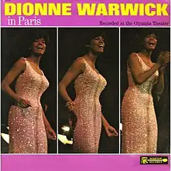 Dionne Warwick in Paris is Dionne Warwick's sixth album, and was released on April 14, 1966 on Scepter Records. It was recorded during Warwick's five-week engagement at the Paris Olympia in January 1966 and was released shortly after the tour was completed. The LP was issued as number 534 in the Scepter Catalog. The liner of this LP is pink with three pictures of Warwick side-by-side, not unlike the Make Way for Dionne Warwick album two years earlier.