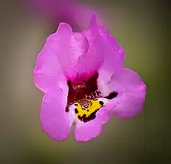 Diplacus angustatus is a species of monkeyflower known by the common names purplelip pansy monkeyflower and narrowleaf pansy monkeyflower.[1][2][3][4]
