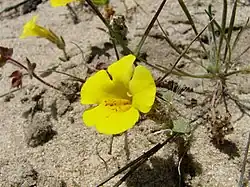 Diplacus vandenbergensis, commonly known as the Vandenberg monkeyflower, is a species of Diplacus located in the Phrymaceae family.[2] It grows as a small herbaceous annual plant and is native to the Burton Mesa Ecological Reserve in Santa Barbara County, California.[3] According to the U.S. Fish and Wildlife Service it is an endangered species and hence was allocated critical habitat within the reserve in 2014.[4]