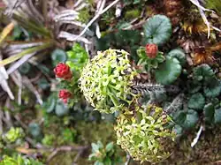 Within alpine areas, it has been recorded in coniferous heath vegetation, bolster heath vegetation, heath vegetation, bog vegetation and short alpine herb field vegetation.[13] Diplaspis cordifolia can be found at locations in Tasmania such as: Cradle Mountain,[12] Mt Field,[14] and the Southwest National Park.[15] Tasmanian alpine environments are dominated by hardy shrubs and sedges,[16] and their soils are largely composed of shallow layers of peat.[17]