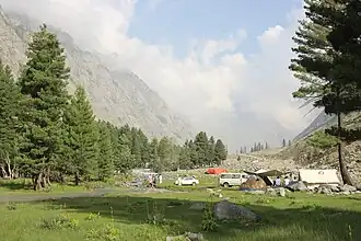 The place is located at a distance of 16 km from the Asbanr village and can be approached from this village in a four-wheel drive vehicle.