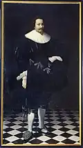 On February 5, 1630, Dirk de Graeff married his second cousin Eva Bicker (1609-1655), daughter of Jacob Jacobsz Bicker (1581–1626), advisor of Amsterdam, and Anna Roelofsdr de Vrij (1589-1626).[1] Her father was first cousin with statesman and Amsterdam burgomaster Andries Bicker and Dirk de Graeff himself was a full cousin of the Bicker brothers around Andries. In 1631 he was appointed commissioner of Amsterdam and member of the Amsterdam Vroedschap[3][1] and in 1632 he became Schepen.[5][1] He belonged to the powerful states-oriented Bicker-De Graeff faction of the city, led by his father Jacob and his cousin Andries Bicker.