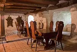 A dirnitz (German: Dürnitz or Türnitz, from the Slavic dorniza = "heated parlour", Danish: Dørns, North Frisian: dörnsch or dörnsk[1][2]) or Knights' Hall was the heatable area of a medieval castle. It was usually a single large room on the ground floor of the palas below the great hall. It was often expensively furnished and had a decorative vault. Occasionally it also described the cabinet (Kemenate) or an entire hall building. The term is German.