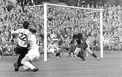 The Disaster of Sweden (Spanish: Desastre de Suecia)[1] is the name given to the early elimination of the Argentina football team from the 1958 FIFA World Cup at the hands of the Czechoslovakia football team. The match was played on 15 June 1958, at the Olympiastadion in the city of Helsingborg, Sweden, the host country of the championship. That day, Czechoslovakia beat Argentina 6–1. The final result means the heaviest defeat for the Albiceleste team in a FIFA World Cup.[2] [3]