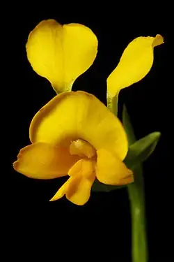 Diuris aequalis, commonly called the buttercup doubletail,[3] a species of orchid which is endemic to New South Wales. It has two rolled leaves and spikes of two to five golden-yellow to orange flowers and is listed as "Endangered".