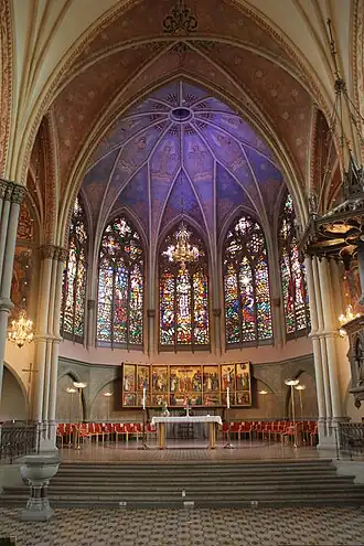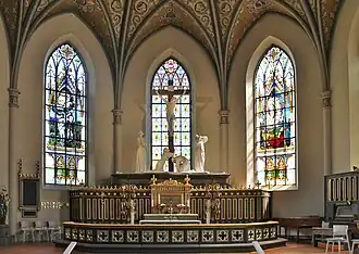 The altar of Apriķu Lutheran Church in Laža Parish, Latvia
