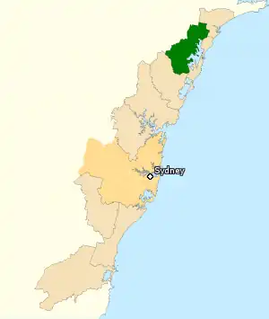 The division was located in the Hunter region of New South Wales, including the coal-mining towns of Cardiff and Wallsend as well as Toronto, Morisset, Cooranbong, Brightwaters, Windermere Park, Sunshine, Glendale and Warners Bay.