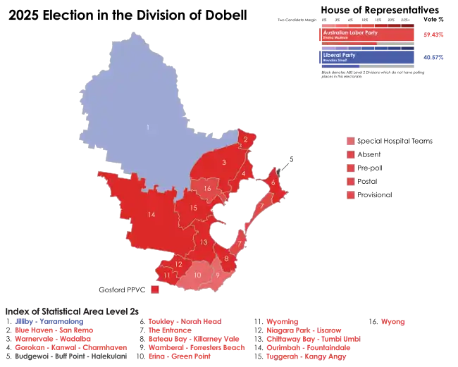 - ^ Dobell, NSW, 2025 Tally Room, Australian Electoral Commission.