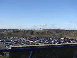 The first major changes to Dix Stadium began in 1992 when an elevator was added to reach the press box and suites, and in 1996 when permanent lighting was added.[10][11] Night games had been played since 1990, but with temporary lighting.[12] A new scoreboard and artificial turf were installed in 1997, which allowed the field hockey team to begin play at the stadium. The field hockey team played home games at Dix Stadium through the 2004 season before moving to the adjacent Murphy-Mellis Field in 2005. After the east side bleachers were condemned and demolished in 2001, the area remained open for the entire 2002 season. Prior to the start of the 2003 season, a new section of bleacher seating was built as the student section, bringing the total seating capacity to 29,287.[13]