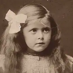 Since the band's early days, Dizzy Mizz Lizzy have been using the photo of a young "dizzy" girl as mascot, which has been used in varying ways. Christensen explains: "The photo is from around 1920. It depicts the older sister of my grandmother on mother's side. She died around the age of 12–14 of tuberculosis. Her real name is Vera. There are two or three copies of the photo in my family. I have one hanging in my apartment. The same photo hung in my home, and when we were searching for a cover for our first release (the 1993 promo), we felt it was a great idea to use the picture of her as a sort of mascot or logo."[89] On their demo's cover, the photograph was colored with fluorescent colors. Danish designer MandOverBord subsequently used the picture for the band's eponymous debut album and singles, coloring the girl with more natural colors but also adding red laser beams coming from her eyes. The 2002 compilation album The Best of Dizzy Mizz Lizzy + Live in Aarhus '96 superimposed the mascot over the cover art from the band's second album, Rotator. During the band's 2009 reunion, the mascot was used in promotional material and on stage, and appeared in a duotone black and white portrayal on the front of the 2010 Dizzcography box set. This set included all previous albums, of which the artwork (including the mascot) were completely redrawn because the original designs had not been saved.[59] The live DVD Live in Concert 2010 features a black and white rendering of the original photo amidst text in a theater poster design. After the band reunited in 2014, the mascot was again used, this time in the form of an anaglyph 3D rendering for promotional material, on stage, and the cover art of the 2016 studio album Forward in Reverse and its singles.