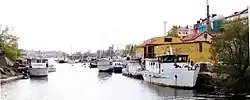 In 1667, a few cottages intended for "paralysed and crippled seafarers" were built forming what was to become Djurgårdsstaden. The Swedish Navy moved to Karlskrona during the 1680s however, and the neighbourhood was instead populated by a diverse crowd. Plans to demolish the "insignificant shacks" in front of the World Fair in 1897, and for a planned expansion of the naval shipyard in 1918, never were accomplished and the area is today protected as a historical monument.[2]