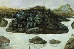 Djurgården was until the 16th century known as Valmundsö[a] and this name is still preserved in locations such as Waldemarsudde. Though several proposals to explain this name have been put forward, no authoritative explanation is generally accepted. While the name of King Valdemar (1239–1302) was probably associated with the old name during the 17th century, the separate elements of the original variations of the name might be interpreted as etymologically related to either Walm-und-ö - if walm is linked to the Anglo-Saxon words wielm, wylm, this would mean the original name should be interpreted as "The island outside of which the waves grow large" (an interpretation with no equivalents in other Nordic geographic names) - or Wal-mund-ö - which could possibly be interpreted as walder ("embankment", "grounds") and mun ("mouth"), i.e. "the grounds next to the mouth of Lake Mälaren".[2][3]