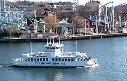 Djurgården (pronounced [ˈjʉ̌ː(r)ɡɔɳ] or [ˈjʉ̂ːrˌɡoːɖɛn] ⓘ) or, more officially, Kungliga Djurgården (Swedish for 'The [Royal] Animal Park'), is an island in central Stockholm, Sweden. Djurgården is home to historical buildings and monuments, museums, galleries, the amusement park Gröna Lund, the open-air museum Skansen, the small residential area Djurgårdsstaden, yacht harbours, and extensive stretches of forest and meadows. It is one of the Stockholmers' favorite recreation areas and tourist destinations alike, attracting over 10 million visitors per year, of which some 5 million come to visit the museums and amusement park.[1] The island belongs to the National City park founded in 1995. Since the 15th century the Swedish monarch has owned or held the right of disposition of Royal Djurgården. Today, this right is exercised by the Royal Djurgården Administration which is a part of the Royal Court of Sweden.