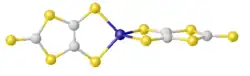 - ^ W.T.A. Harrison; R.A. Howie; J.L. Wardell; S.M.S.V. Wardell; N.M. Comerlato; L.A.S. Costa; A.C. Silvino; A.I. de Oliveira; R.M. Silva (2000). "Crystal structures of three [bis(1,3-dithiole-2-thione-4,5-dithiolato)zincate]2− salts: [Q]2[Zn(dmit)2] (Q = 1,4-Me2-pyridinium or NEt4) and [PPh4]2[Zn(dmit)2]·DMSO. Comparison of the dianion packing arrangements in [Q]2[Zn(dmit)2]". Polyhedron. 19 (7): 821–827. doi:10.1016/S0277-5387(00)00322-3.