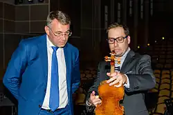 The Robrecht violin, created in 1728 by Bartolomeo Giuseppe Antonio Guarneri (delGesù), a renowned luthier of Cremona, was purchased by the Fund and presented to Kogan in Milan on September 1, 2011.