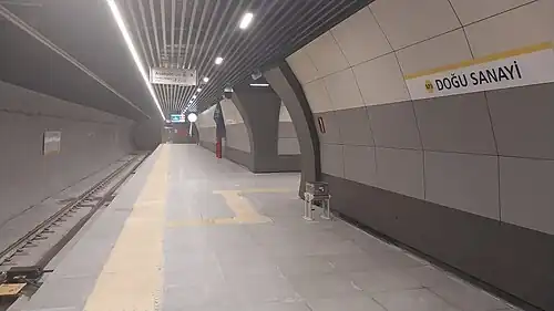 Doğu Sanayi is an underground station on the M9 line of the Istanbul Metro.[1][2] It is located under 29 October Street in the Yenibosna Central neighbourhood of Bahçelievler. It was opened on 18 March 2024, with the extension of M9 from Bahariye to Ataköy.[1]