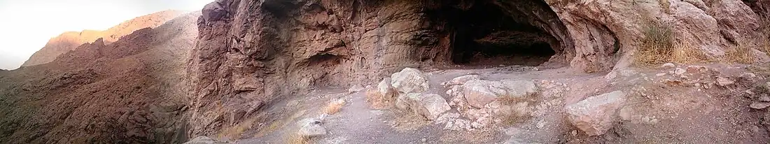 The Do-Ashkaft Cave, being a Middle Paleolithic cave site, is located north of Kermanshah, near Taq-e Bostan, Iran about 1,600 m (5,200 ft) above sea level. Its entrance faces south of Meywala Mount, overlooking the national park of Kuhestan. The site was first visited in 1996 by Iranian researchers F. Biglari and S. Heydari-Guran and during the following four years a series of surface surveys were made at one-month intervals, which resulted in a rich collection of Middle Paleolithic lithic artifacts.[1]