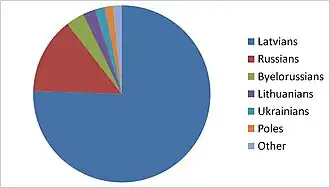 - ^ "Iedzīvotāju skaits pēc tautības reģionos, pilsētās, novados, pagastos, apkaimēs un blīvi apdzīvotās teritorijās gada sākumā (pēc administratīvi teritoriālās reformas 2021. gadā)". Central Statistical Bureau of Latvia. Retrieved 19 June 2024.