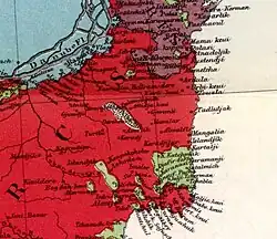 The Arabs were highly valued for their skill in practicing agriculture in drought conditions.[5] The territory on which they settled is crossed today by the Romanian-Bulgarian border. Of the five settlements, the most important was Dokuz Ağaç ("Nine trees"), today Măgura, a village in Cerchezu Commune, Constanța County, Romania. They were the only Arab settlements in Europe. The Ottoman census of 1856 reports 145 Arabs (0.9%) in Dobrogea,[6] but their number increased significantly after this date. In 1861, French geographer Guillaume Lejean mentioned the fact that during his trip through the Balkan Peninsula in 1854, one of these settlements, Arap-Köy, was already abandoned, while the rest of the settlements enjoyed some prosperity. In 1878, Dobrogea was divided between Romania and Bulgaria, and the new border crossed the area inhabited by Arabs. After this date, the Arab settlements began to decline, and part of the population emigrated to the Ottoman Empire.[7]