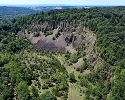 The quarry's operations ceased in the early 1980s.[5] The upheld prohibition on quarrying below road grade was a major economic blow, rendering approximately half of the remaining stone reserves inaccessible, which had an estimated value of $26 million in 1976 dollars.[6] In 2008, Somerset County purchased the abandoned 23-acre site for $822,000 using open-space funds, intending to develop a public recreation area.[7] As of 2025, the site remains undeveloped and closed to the public.
