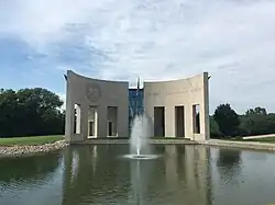 - The World Trade Center Memorial consists of two 11½-foot (3.5 m) columns salvaged from the Twin Towers. The beams are displayed behind glass with an accompanying commemorative plaque. The columns are a gift from University of Kansas alumni Fred and Virginia Urban Merrill.