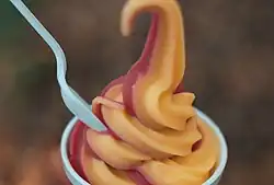Dole Whip (also known as Dole Soft Serve)[1] is a soft serve dairy-free frozen dessert created by Dole Food Company in 1983.[2] Prior to 2023, when Dole Whip began to be sold at retailers, Dole Whip was served at Disney theme parks and Dole Soft Serve was sold elsewhere. The original pineapple flavor is the best known, and additional fruit flavors are sold. Similar or identical desserts modeled after the Dole Whip but not manufactured or served by Dole are generically called pineapple whip.[3]